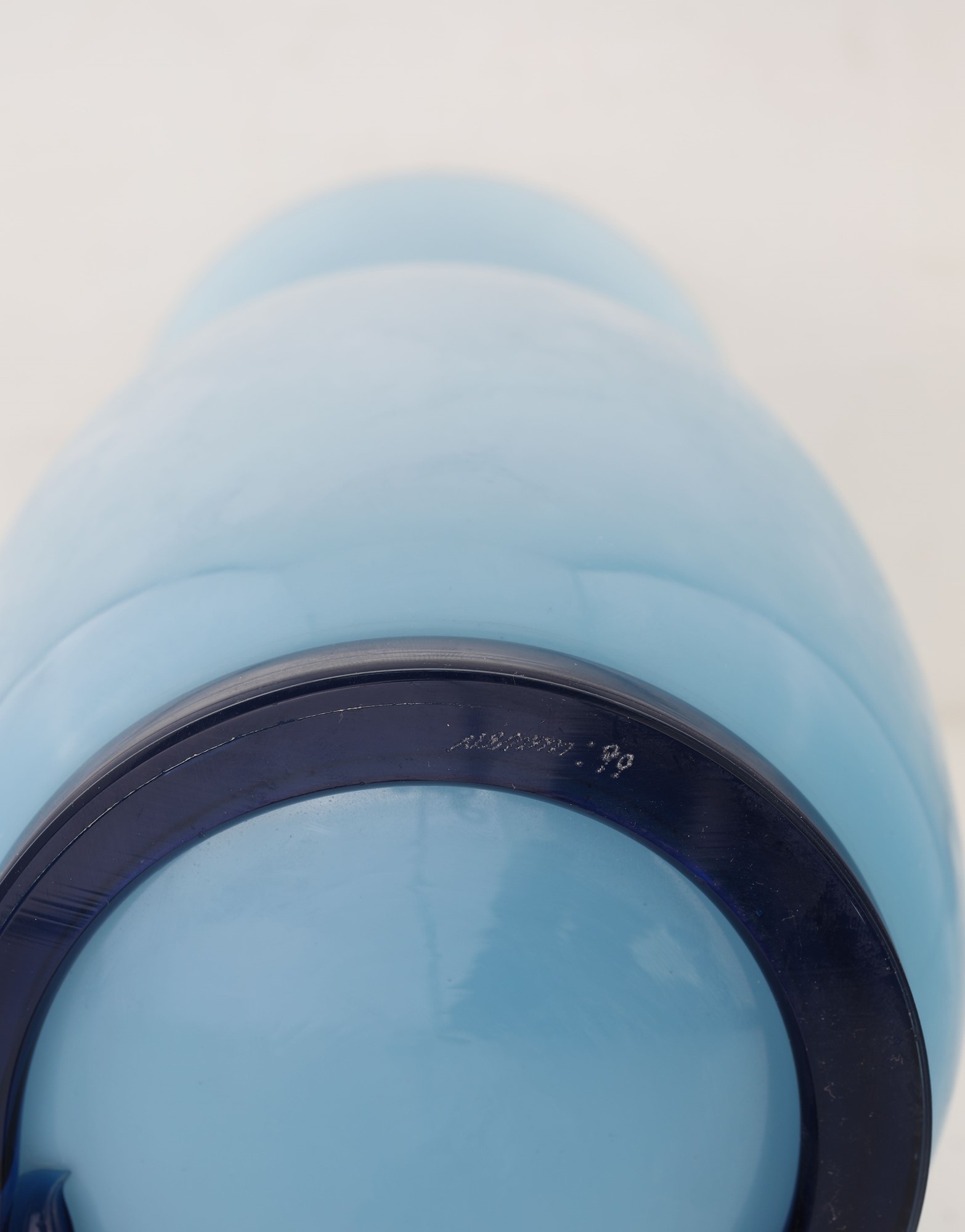 Venini, vaso Opalino in vetro incamiciato lattimo e celeste - Firmato e datato sotto il profilo della base: Venini 99 - altezza cn 36x16,5