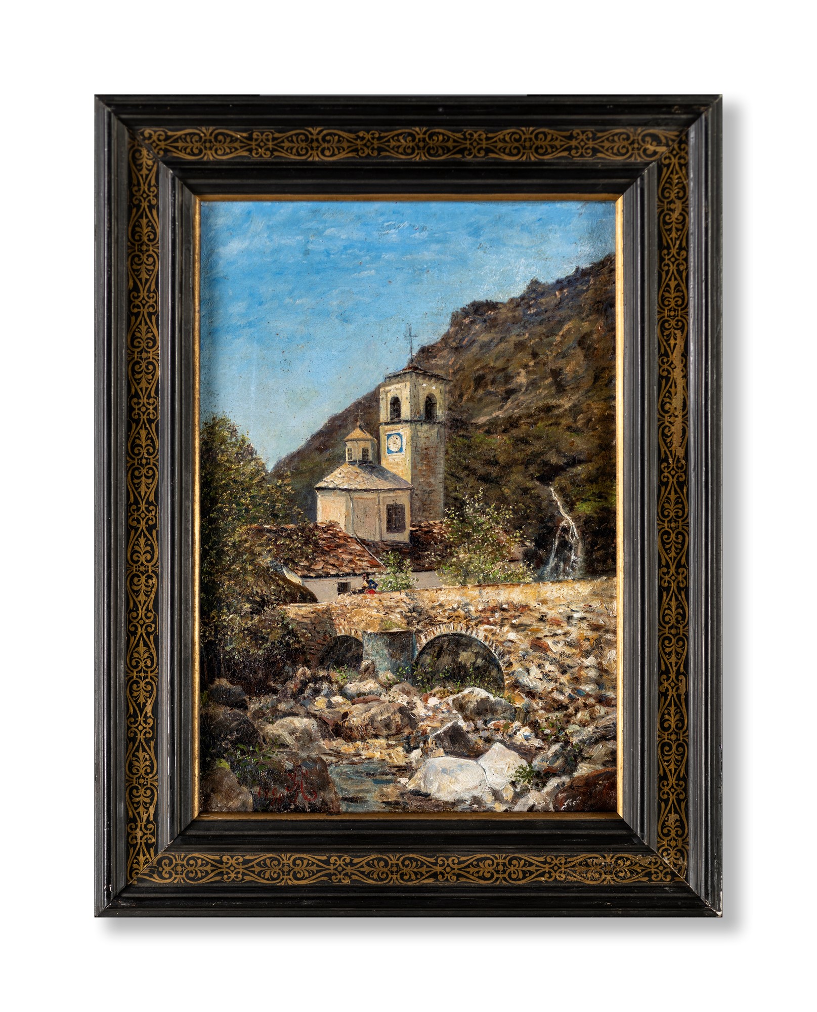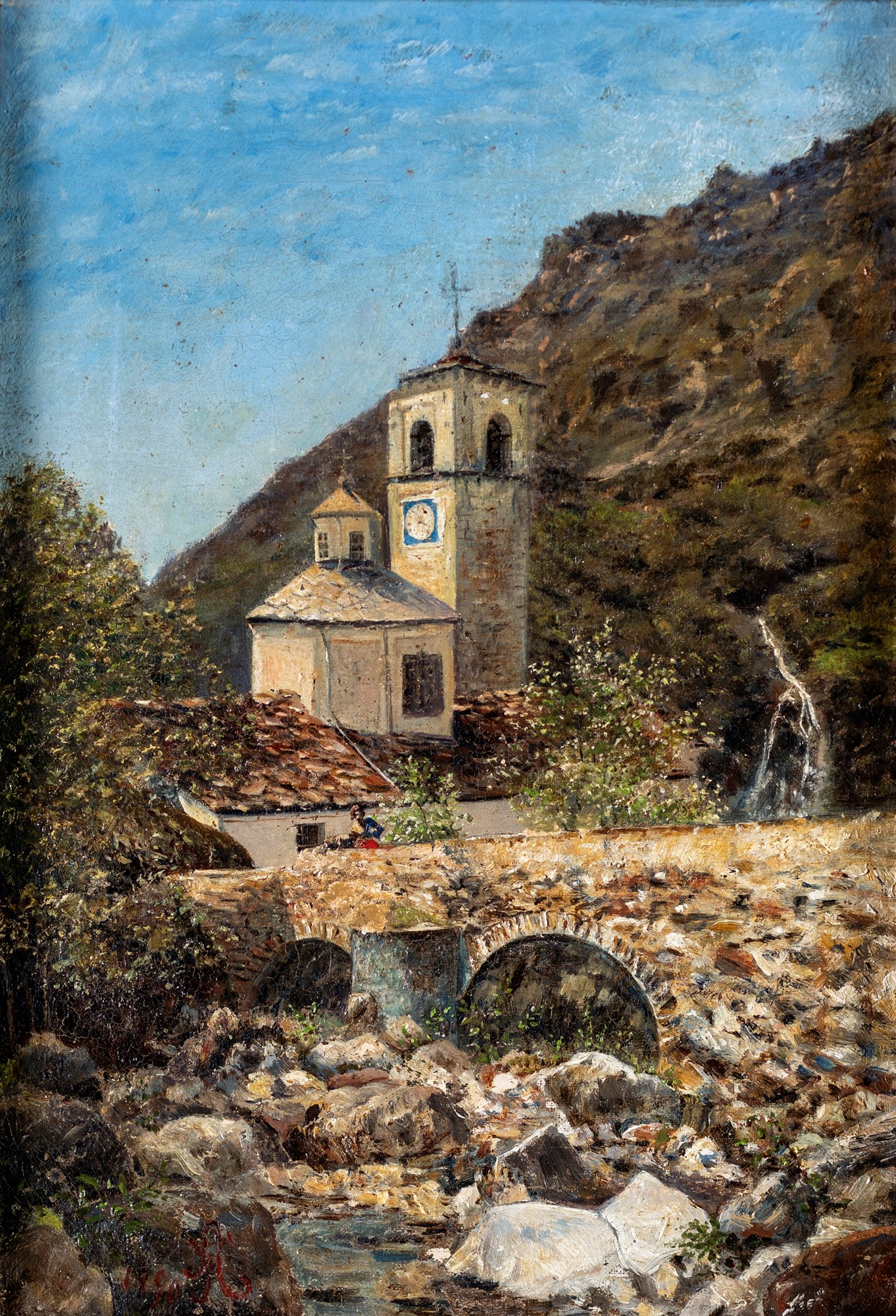 Pittore del XIX secolo - La chiesetta di Monterosso alle Cinque Terre - Siglato e datato in basso a sinistra: 1895 - olio su tela - cm 30x20