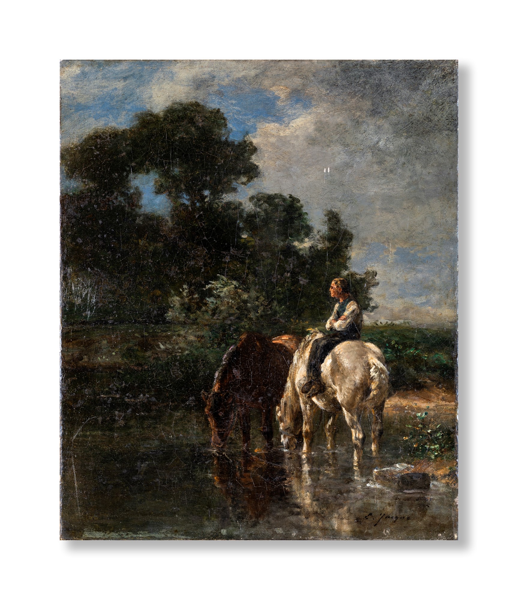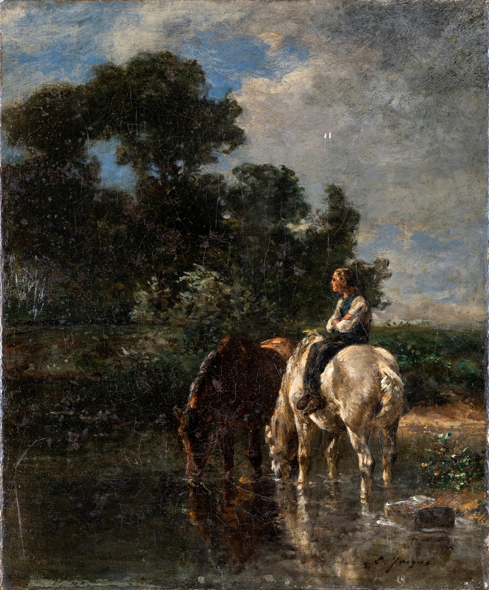 Charles-Emile Jacque - L'abbeverata - Firmato in basso a destra: E. Jacque -...