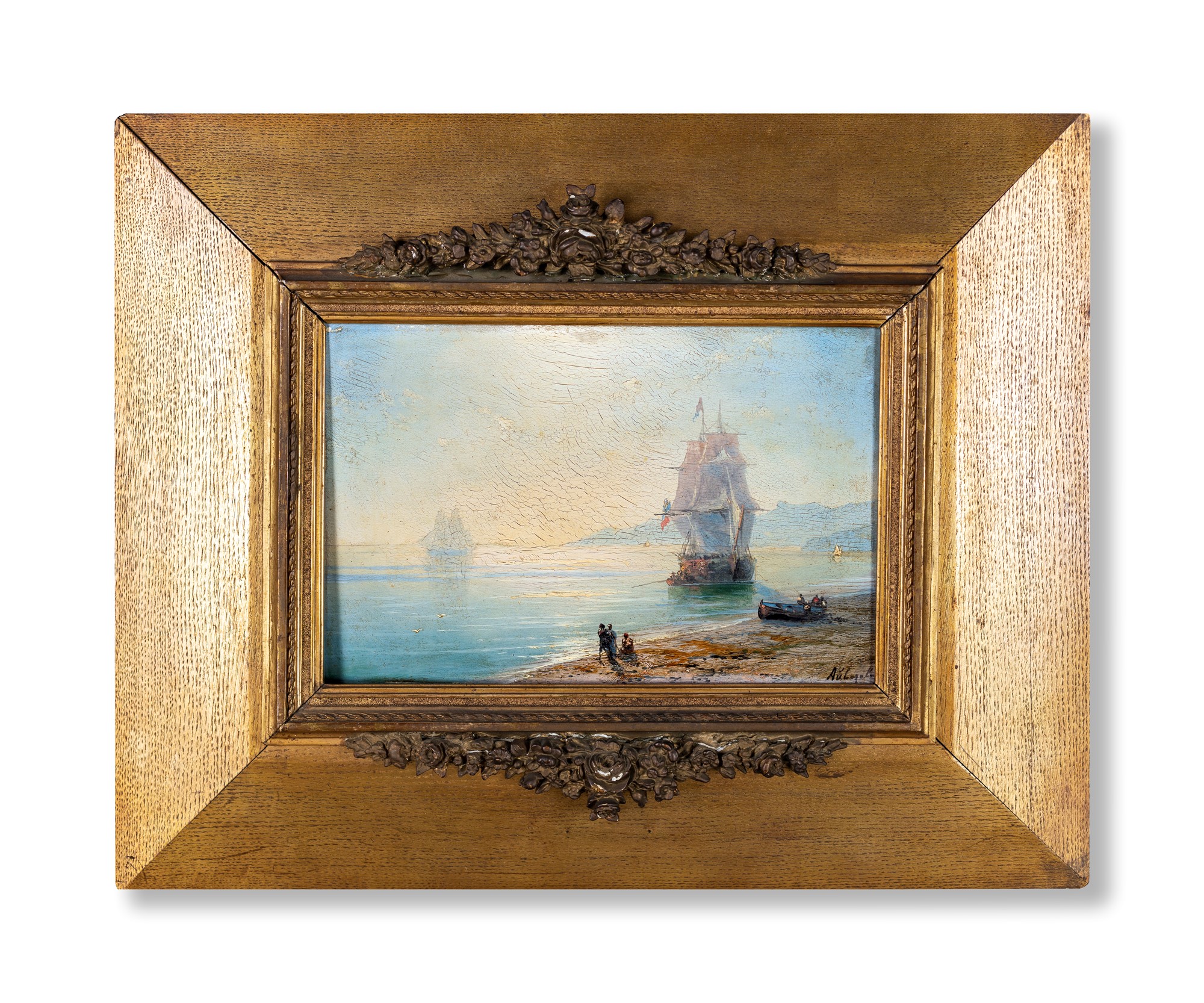 Pittore russo del XIX secolo, Marina con veliero - olio su tavola - cm 21x31