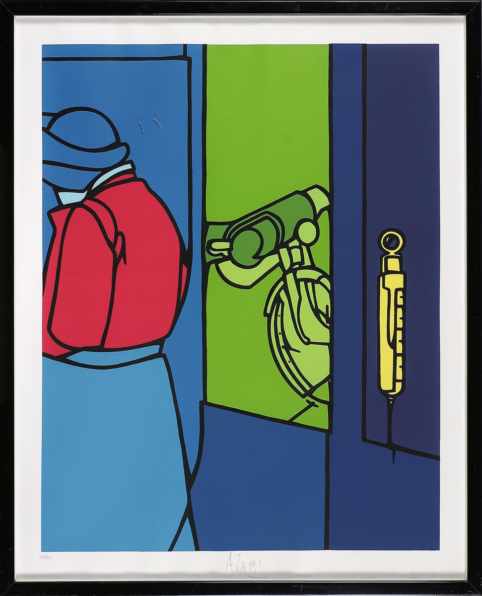 ADAMI VALERIO (n. 1935) Senza titolo. Litografia. Cm 69,00 x 85,00. Misure lastra: 76x60 cm. Tir. 10/125 e firma in basso a matita. Cornice presente