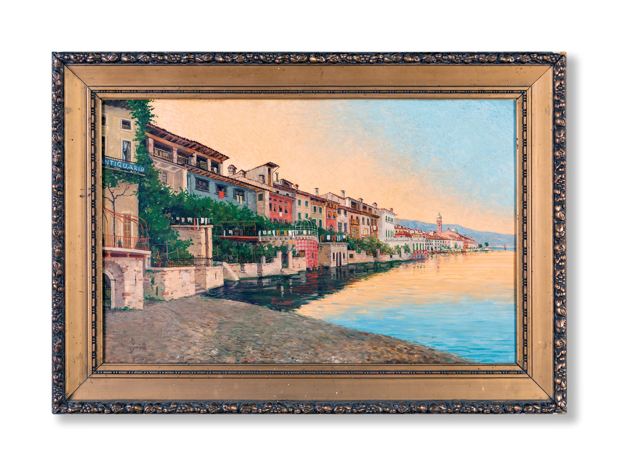 Santo Bertelli - Scorcio di cittadina ligure - Firmato in basso a sinistra: Bertelli - olio su tavola - cm 57x88