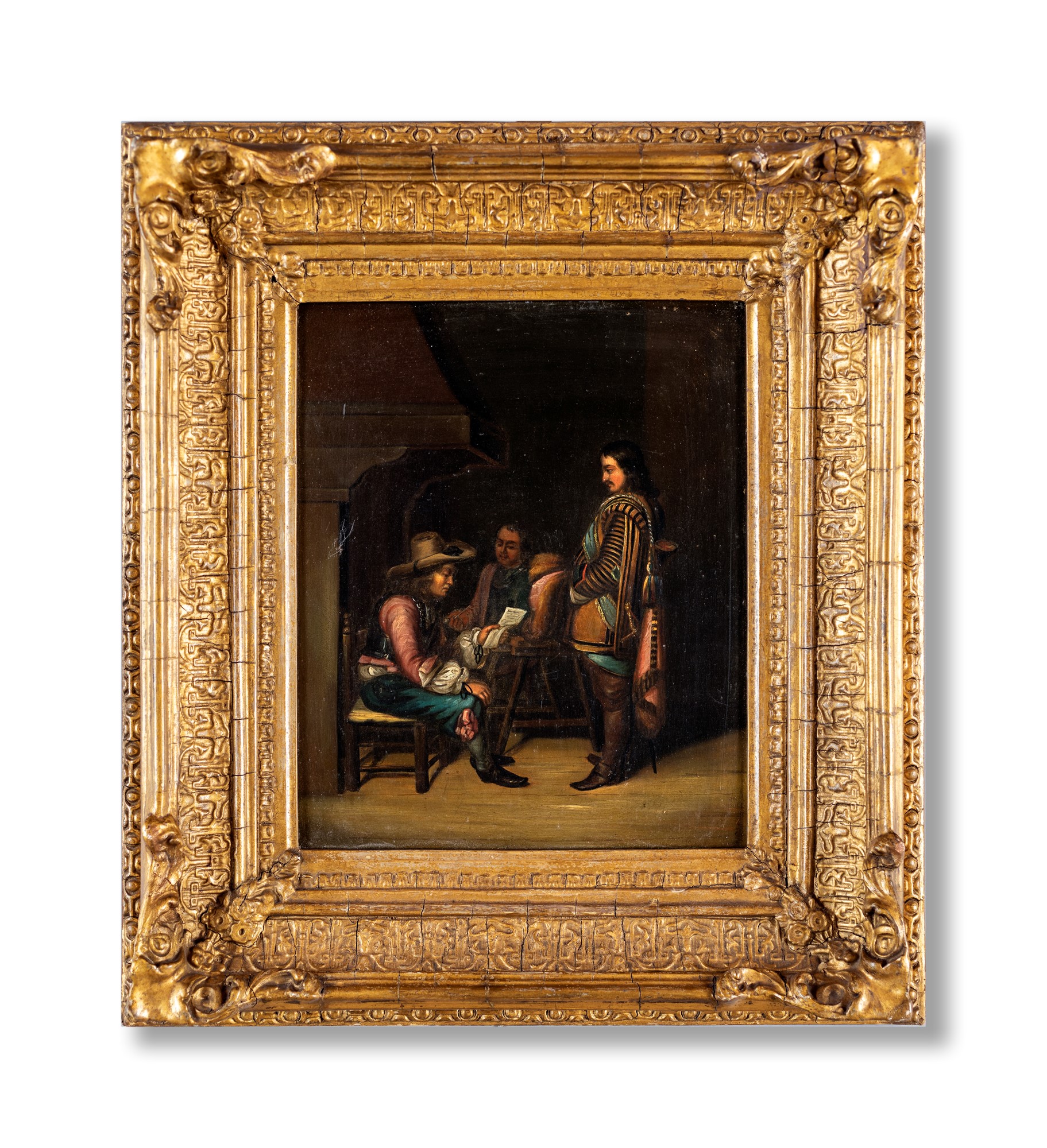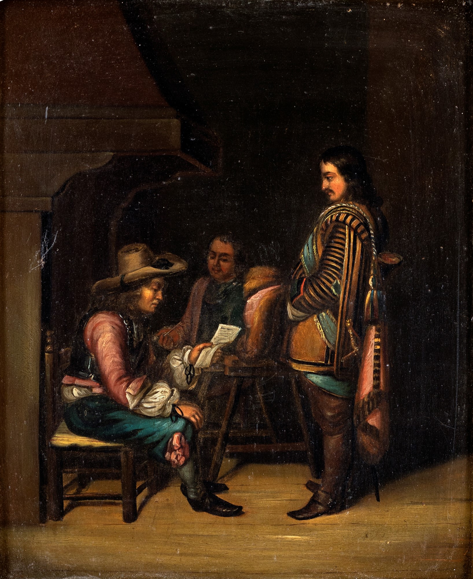 Pittore Fiammingo del XIX secolo - Interno di osteria - olio su tavola - cm 25x21
