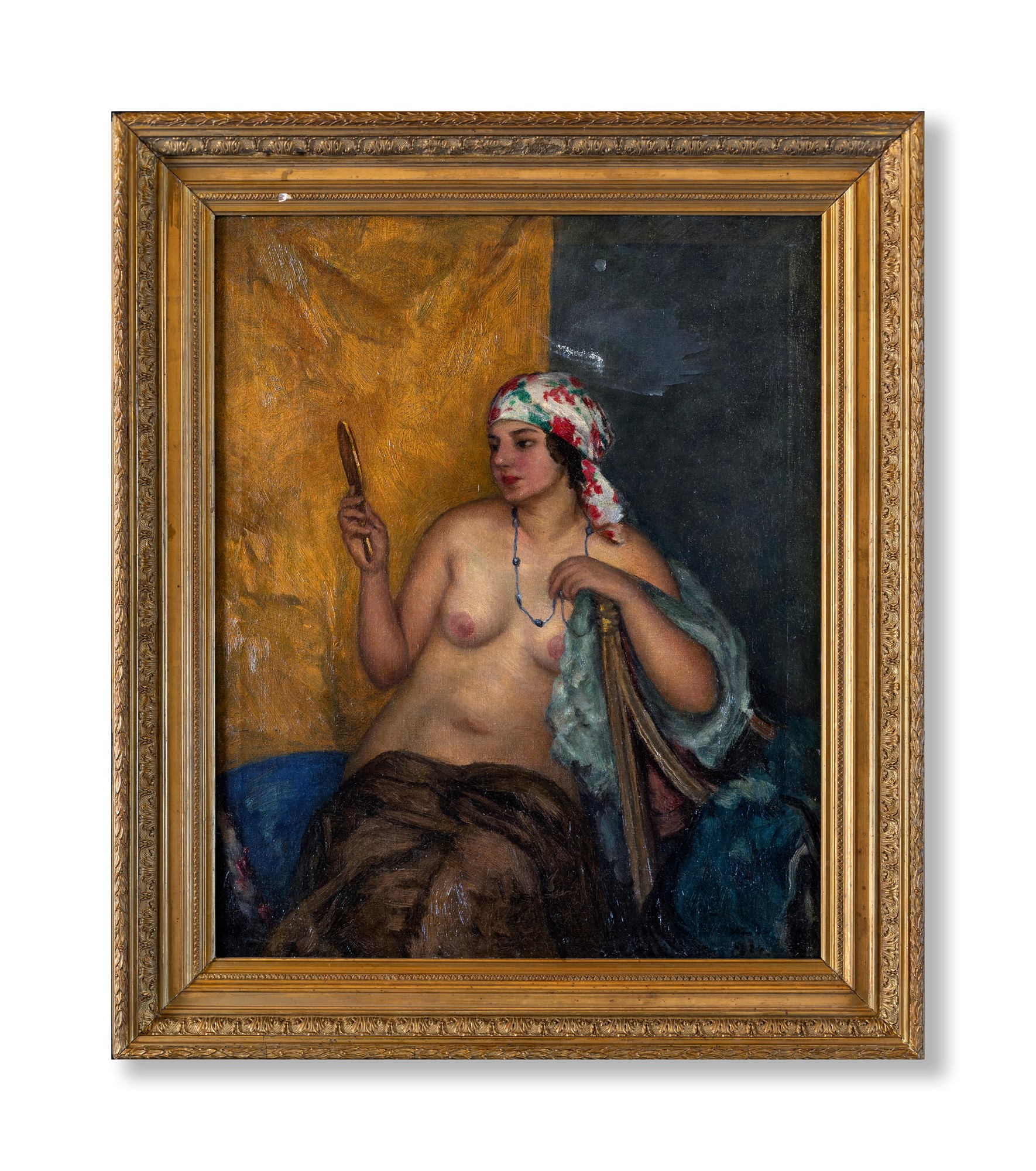 Pittore della fine del XIX secolo - Donna che si specchia - Entro cornice il...