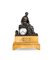 Grande orologio da camino in marmo giallo e bronzo brunito, XIX secolo - con figura scultorea di letterato seduto; quadrante in smalto bianco a numeri romani con due fori di carica, base rettangolare sorretta da piedi a mensola in bronzo dorato - cm 60x43x15
