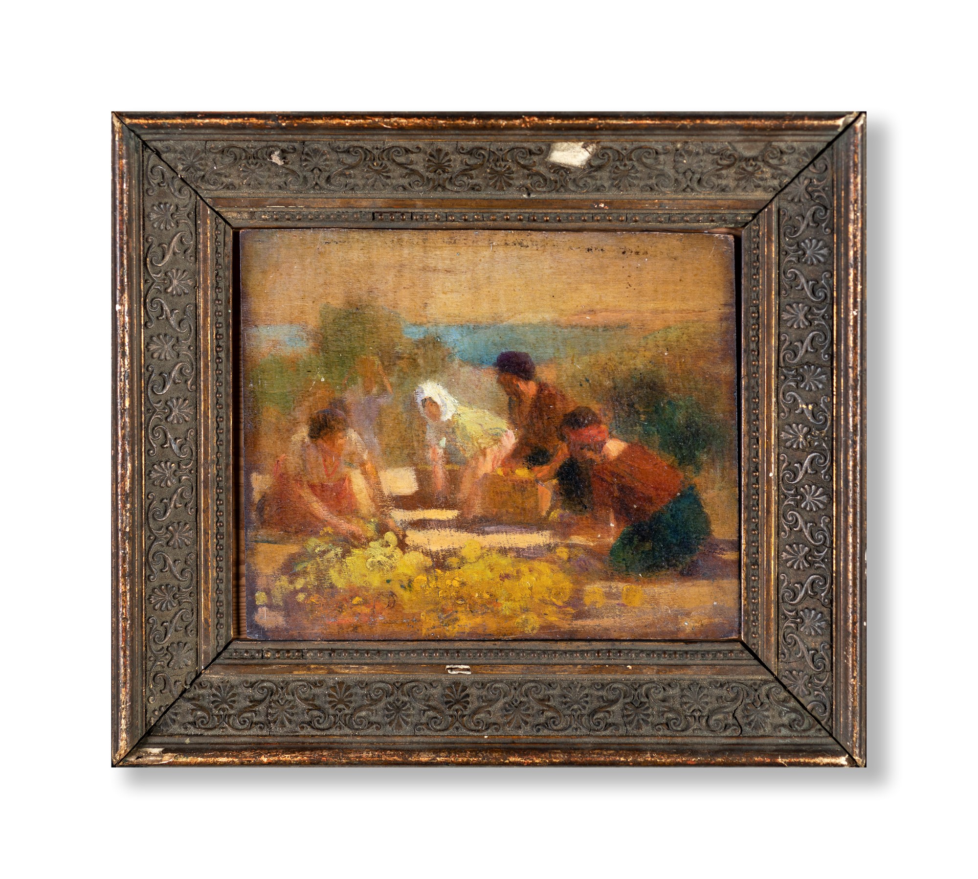 Pittore del XIX secolo - Nell'orto - Iscritto al verso Issupoff - olio su tavola - cm 20x23