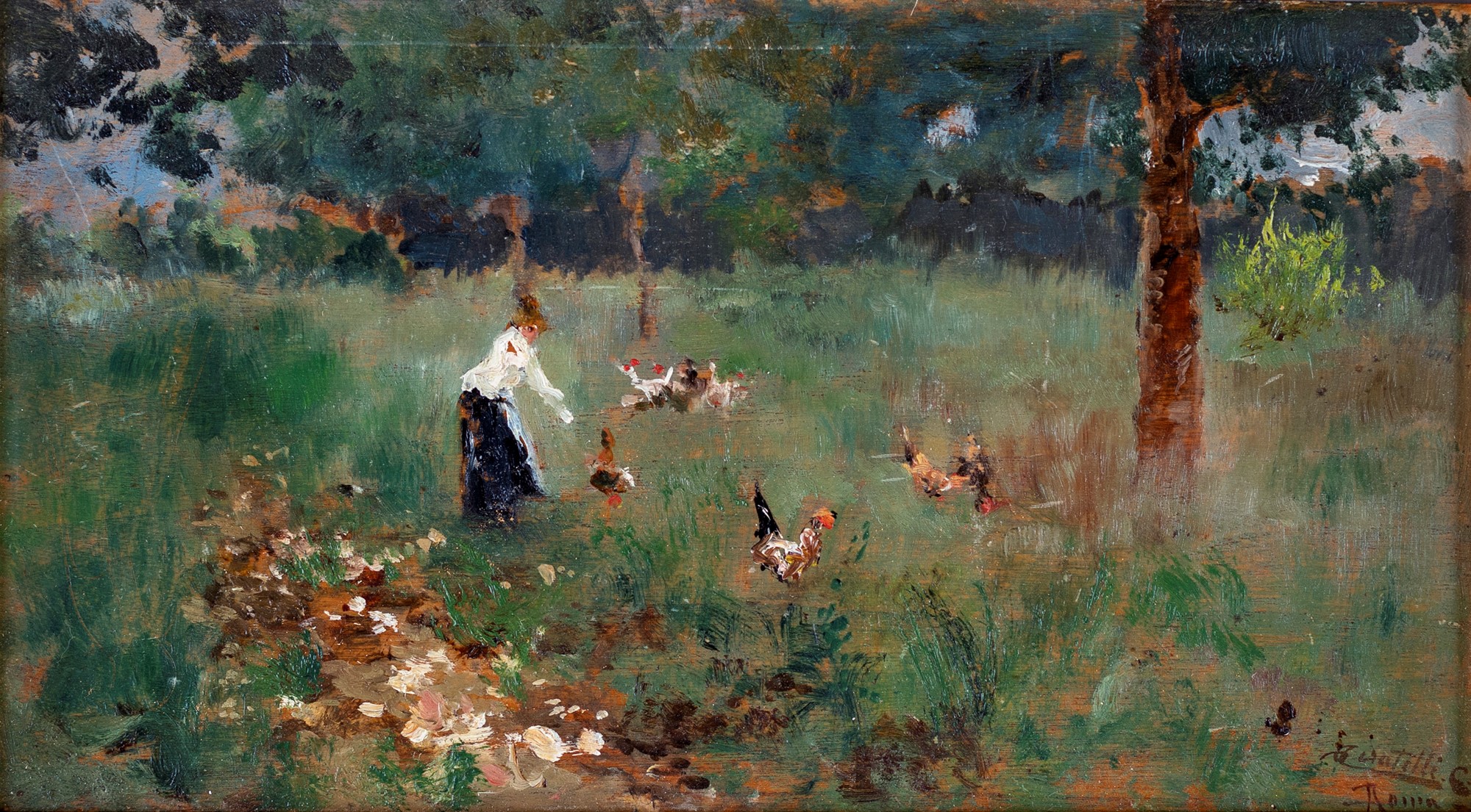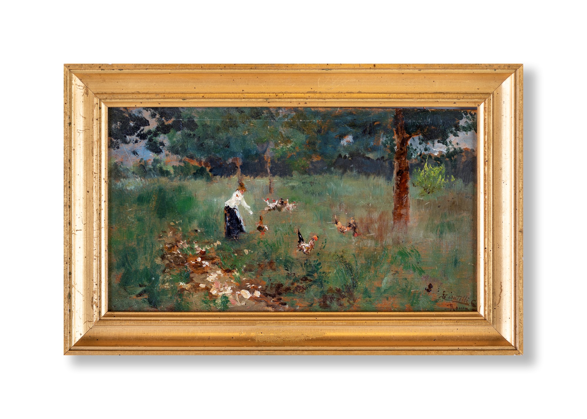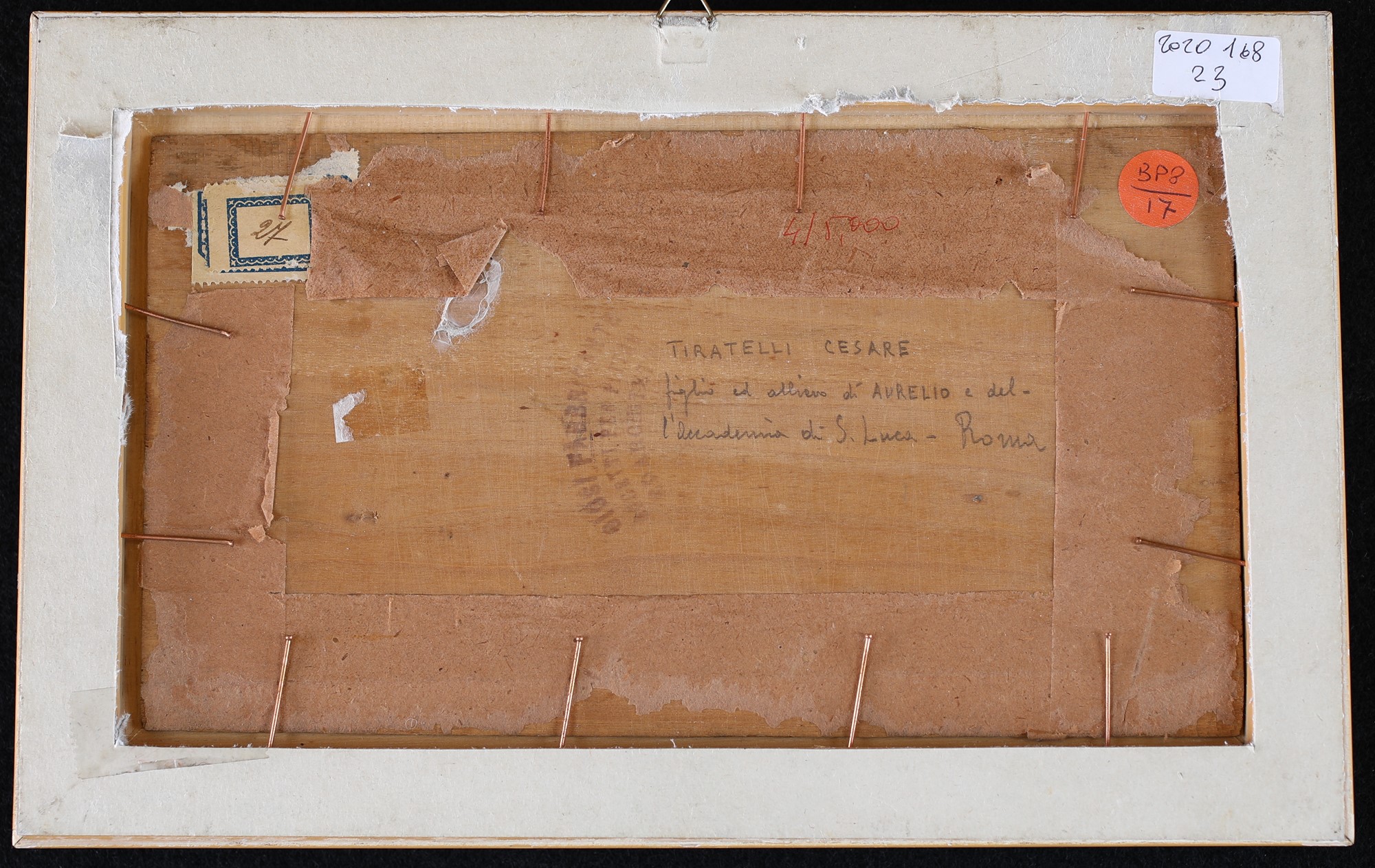 Lot 349 | Cesare Tiratelli - L'aia - olio su tavola - cm 13x23,5