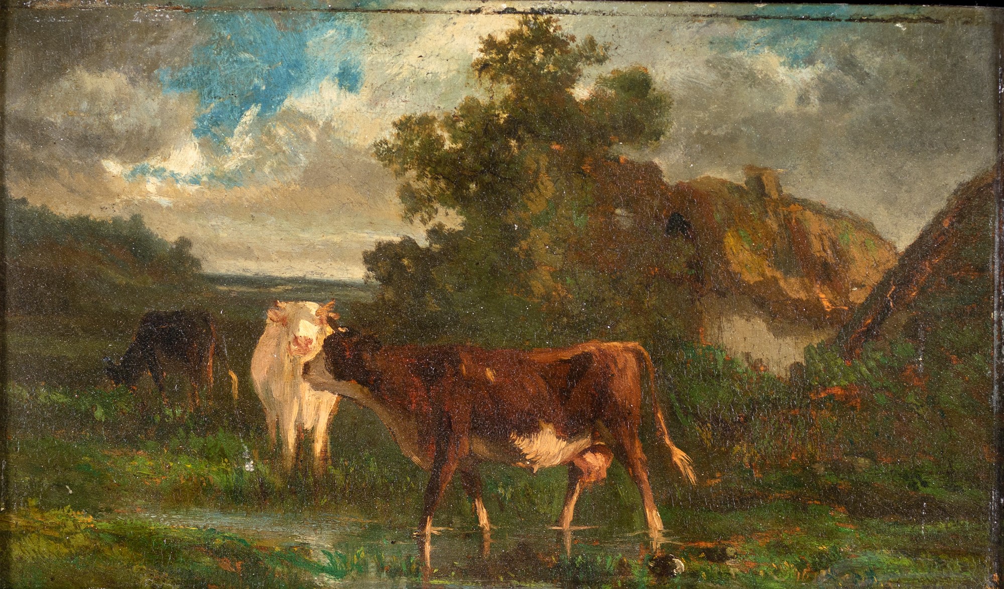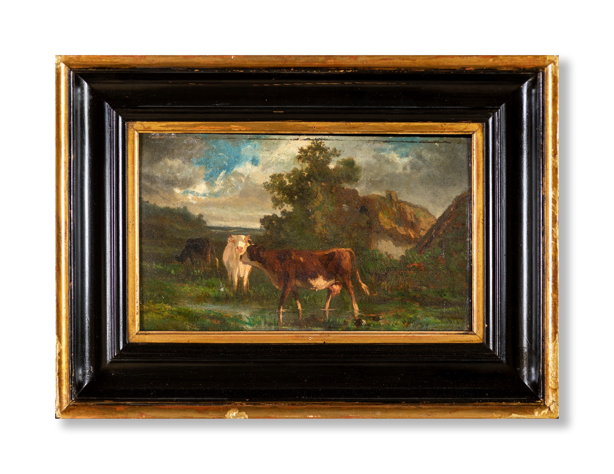 Pittore del XIX secolo - Mucche al pascolo - olio su tavola - cm 20x35