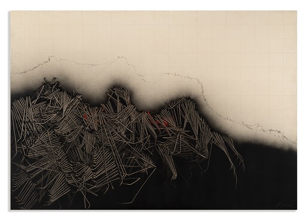Lot 24 | Emilio Scanavino "La montagna" 1980 olio e matita grassa su tela tamburata cm 14