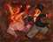 Franz Borghese "L'inseguimento" anni '80 olio su tela cm 40x50 Firmato in basso