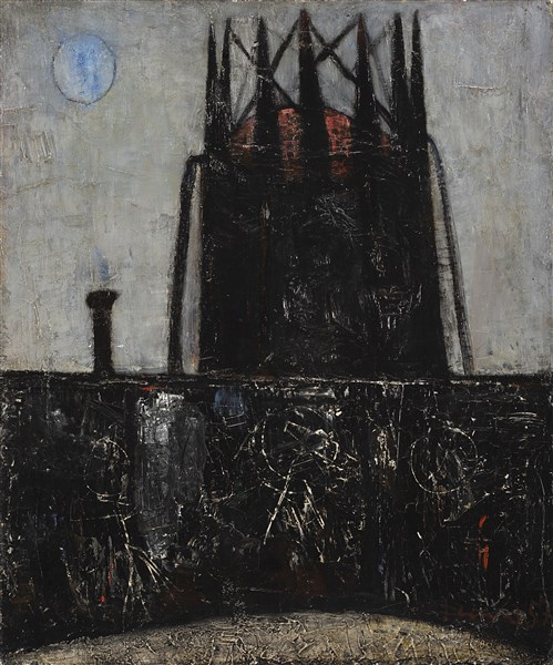 Gianfranco Ferroni "Gasometro" 1957olio su telacm 60x50Firmato e datato 57 in
