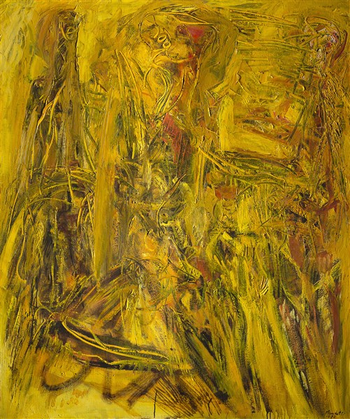 Pompilio Mandelli "Figure nel giallo" 1972 olio su tela cm 140x120 Firmato e dat