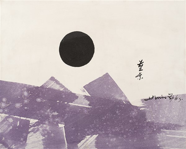 Chin Hsiao "Paesaggio blu" 1963 olio su tela cm 40x50 Firmato e datato 63 a dest