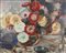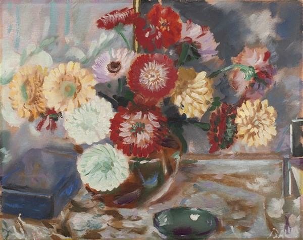 Giacomo Balla "Natura Viva - vaso di dalie colorate" 1951 olio su tavola cm 45x5