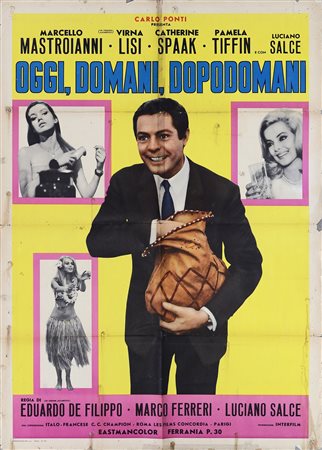 LUCIANO SALCE EDUARDO DE FILIPPO MARCO FERRERI Oggi, Domani, Dopodomani. 1965. Poster. Cm 100,00 x 140,00. Poster manifesto vintage originale. Condizione A meno meno.