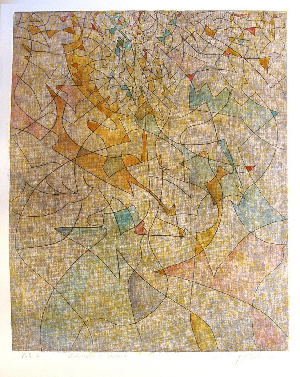 BALSAMO VINCENZO (n. 1932) Senza titolo. 2000. Acquaforte ritoccata a mano. Cm 53,00 x 76,00. P.D.A. Firame tiratura in basso a matita. Autentica dell'artista su fotografia.