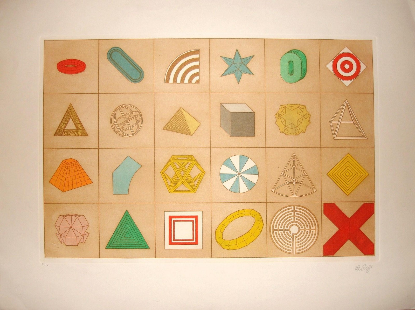DEL PEZZO LUCIO (n. 1933) Simboli. Acquaforte. Cm 80,00 x 60,00. 14/120....