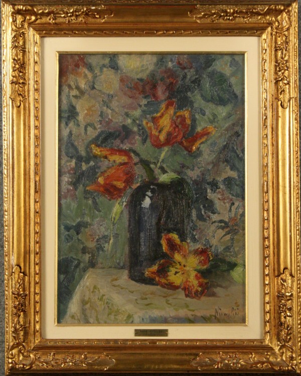 Firmato, datato. NIVOULIES MARIE - Francia, 1879-1968. Dipinto olio su tela raff. ''VASO DI FIORI''. Firmato in basso a destra. In cornice. Mis. Lung. cm. 32,5 Alt. cm. 46 ca.