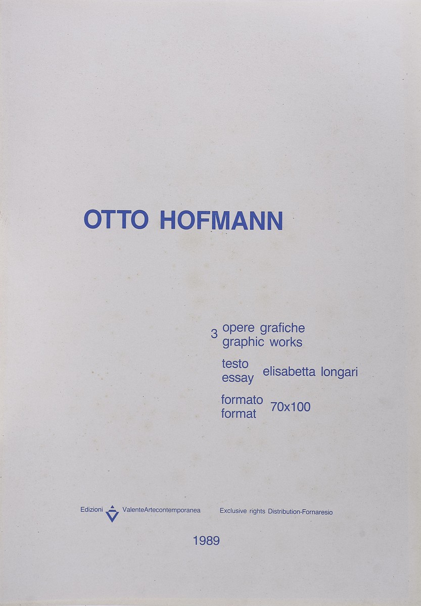 HOFFMANN OTTO (1907 - 1996) Otto Hoffmann (cartella). 1989. Serigrafia. Cm 100,00 x 70,00. Cartella completa contenente n.3 serigrafie firmate e numerate dall'autore a matita. Tiratura: 100 + XXX. Edizioni Valente Arte Contemporanea, con testi di Elisabetta Longari. Stamperie Oncolour, Cantù. Confezione originale numerata. Esemplare: 63