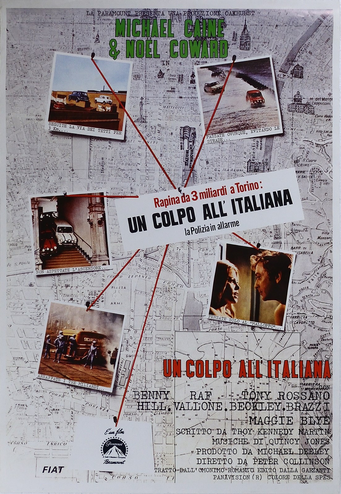 COLLINSON PETER (1936 - 1980) Un Colpo all'Italiana,. 1969. Poster. Cm 70,00 x 100,00. Poster vintage originale. Ri edizione. Girato a Torino. Film cult Mini Minor. Condizione A.