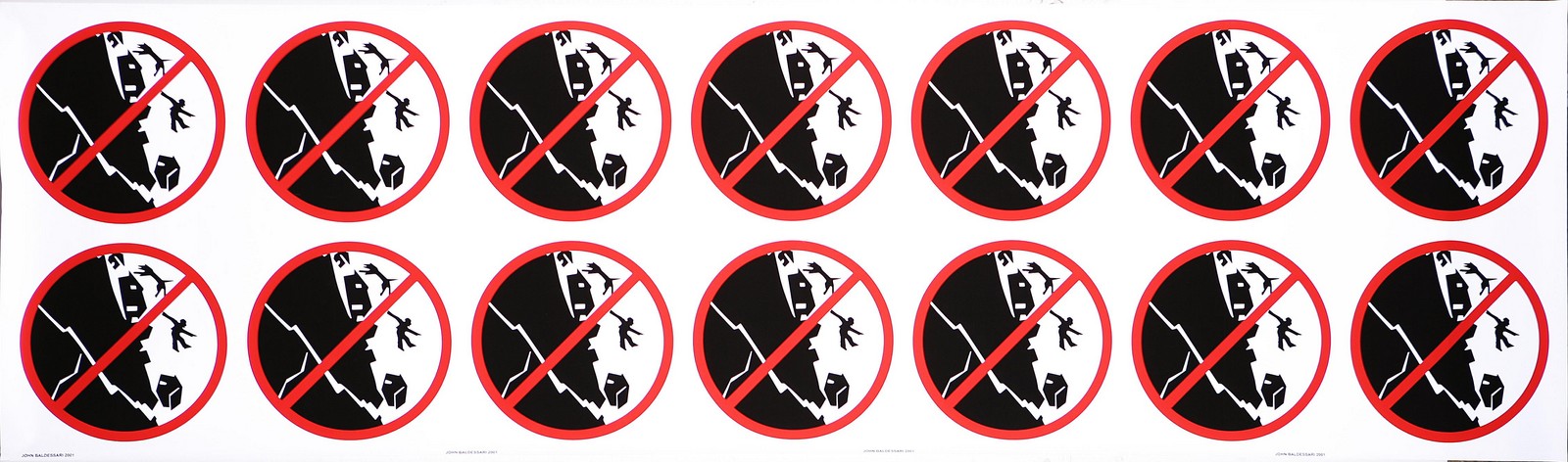 BALDESSARI JOHN (n. 1931) Wallpaper. 2001. Serigrafia. Cm 61,00 x 250,00. Indicazione dell'anno e dell'autore a stampa sulla destra. L'opera fa parte di una serie non numerata di poster affissi sui muri della chiesa si San Giovanni Battista, Venzone, Udine, in occasione della mostra - Pulcherrimae Strade - scoprire arte viaggiando attraverso castelli, piazze, chiese, edifìci storici, cantine e cucine del Friuli Venezia Giulia, dal 23 marzo fino al 30 giugno 2002, con le opere 13 artisti d'arte contemporanea esposte a San Vito al Tagliamento (Marina Abramovic), Trieste (Paolo Delle Monache), Grado (Mike Bidlo), Gorizia (Andres Serrano), Gradisca d'Isonzo (Enzo Cucchi), Venzone (John Baldessari). Manìago (Tom Sachs), Versutta di Casarsa della Delizia (Paul McCarthy), Pordenone, Palmanova, San Daniele del Friuli, Lignano Sabbiadoro (Kenny Scharf), Clauzetto a Pradis di Sono (Jenny Holzer), Udine (John Armleder), Muggia (Louise Bourgeois) e Diiìno-Aiirisina (Lawrence Weiner).