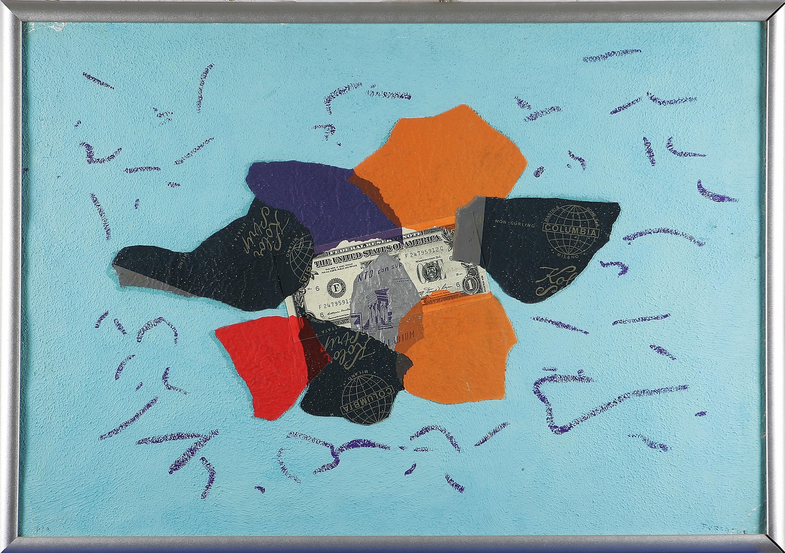 TURCATO GIULIO (1912 - 1995) Senza titolo. Litografia ritoccata a mano. Cm 100,00 x 70,00. Litografia con aggiunta di collage. P.A.. Tiratura e firma in basso a matita. Timbro a secco in basso a sinistra visibile dal retro. Cornice presente