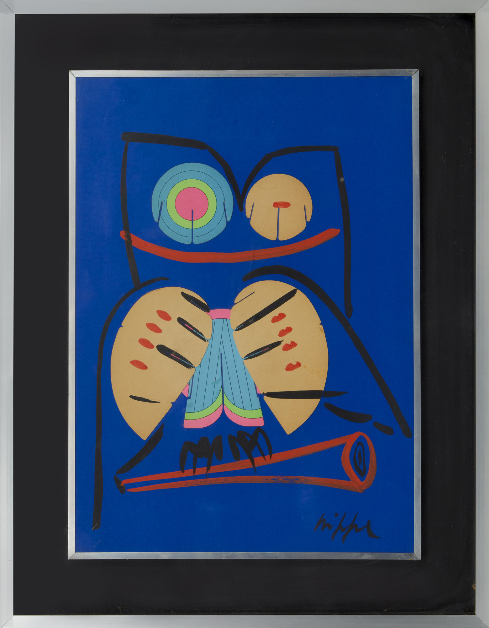 Roberto Crippa , Senza titolo , Tecnica mista e collage su carta lucida riportata su faesite