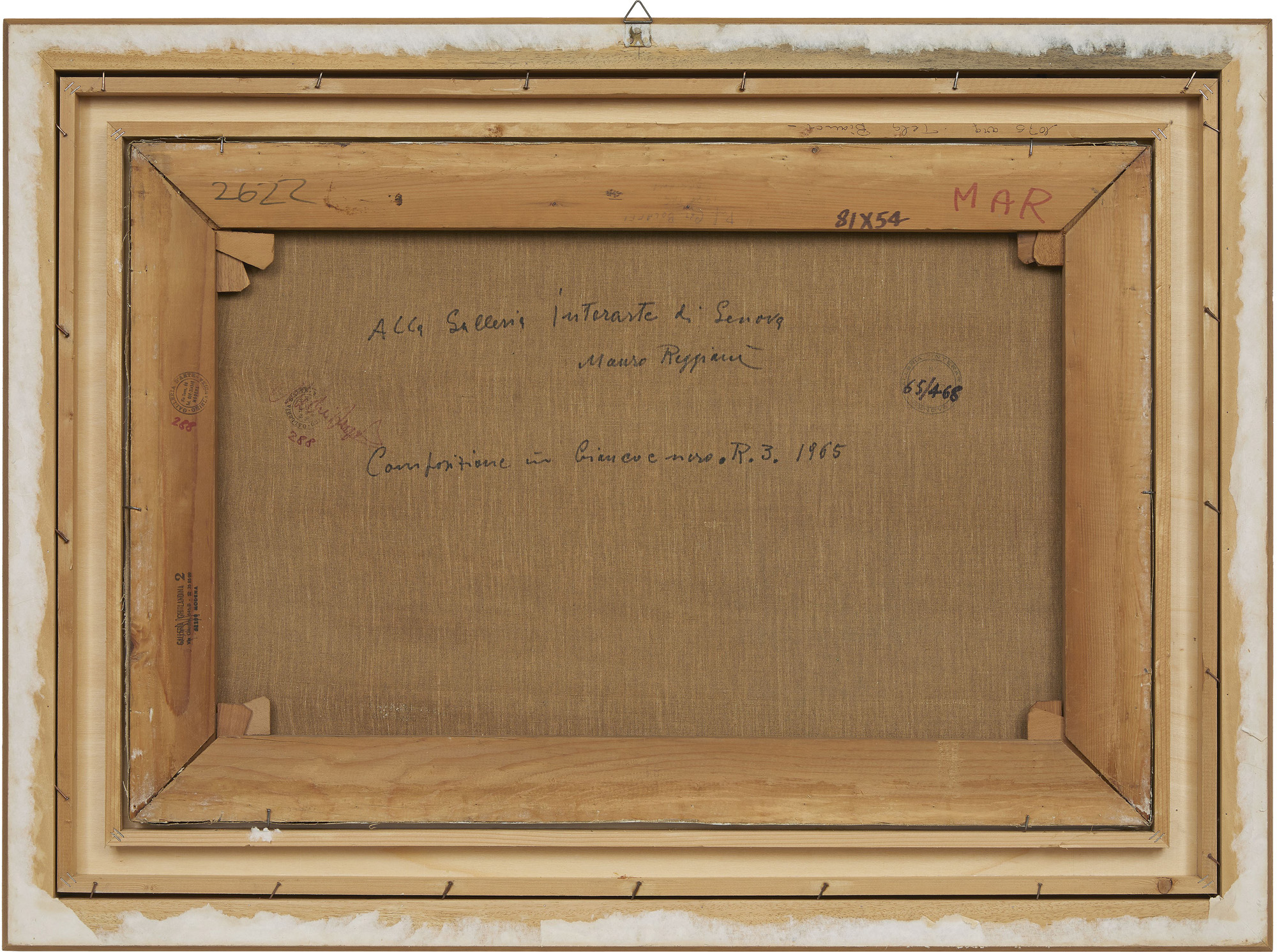 Timbro della Galleria Interarte, Genova (n. archivio 65/468) sul retro