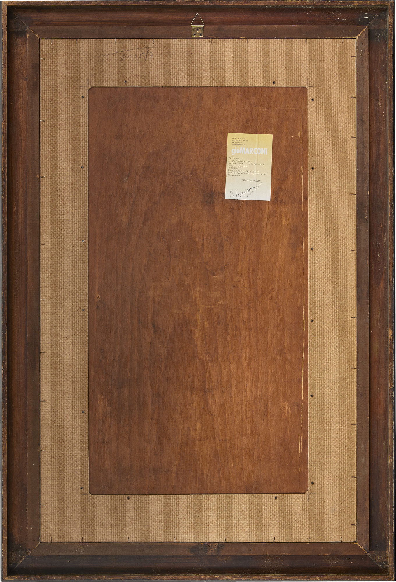 Etichetta della Galleria Gio Marconi, Milano sul retro