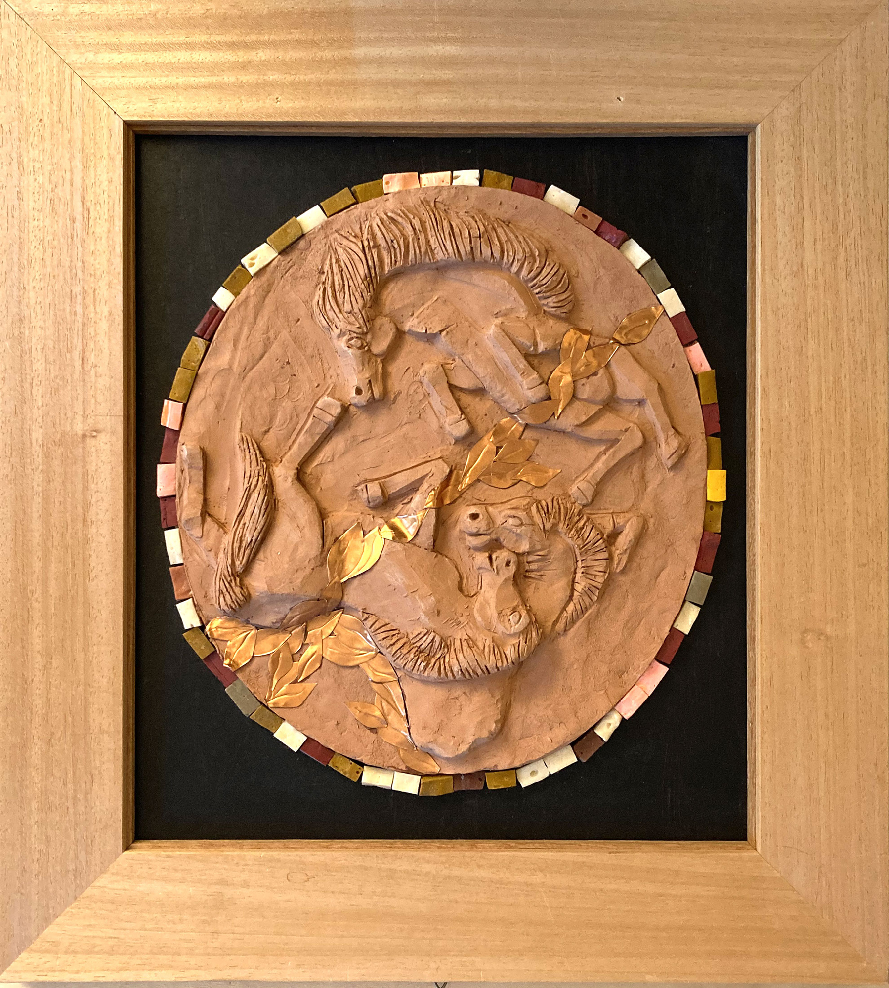 Lucia De Colle - Italia - Il gioco dei cavalli - Bassorilievo, opera in creta - 50x50 cm