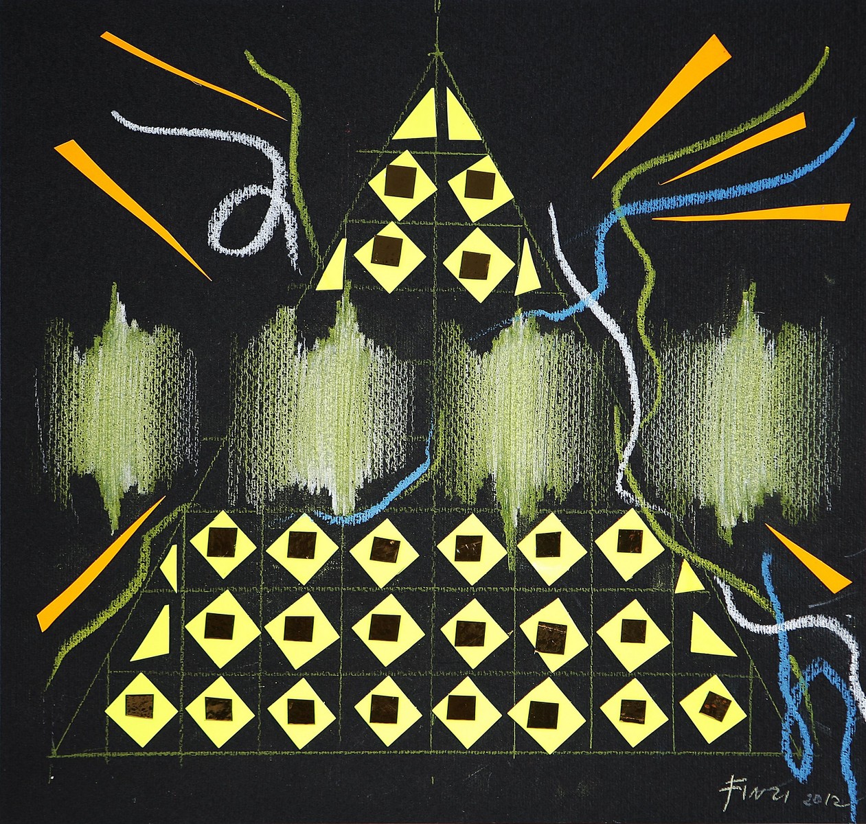FINZI ENNIO (n. 1931) Senza titolo. 2012. Tecnica mista e collage su carta. Cm 35,00 x 33,00.