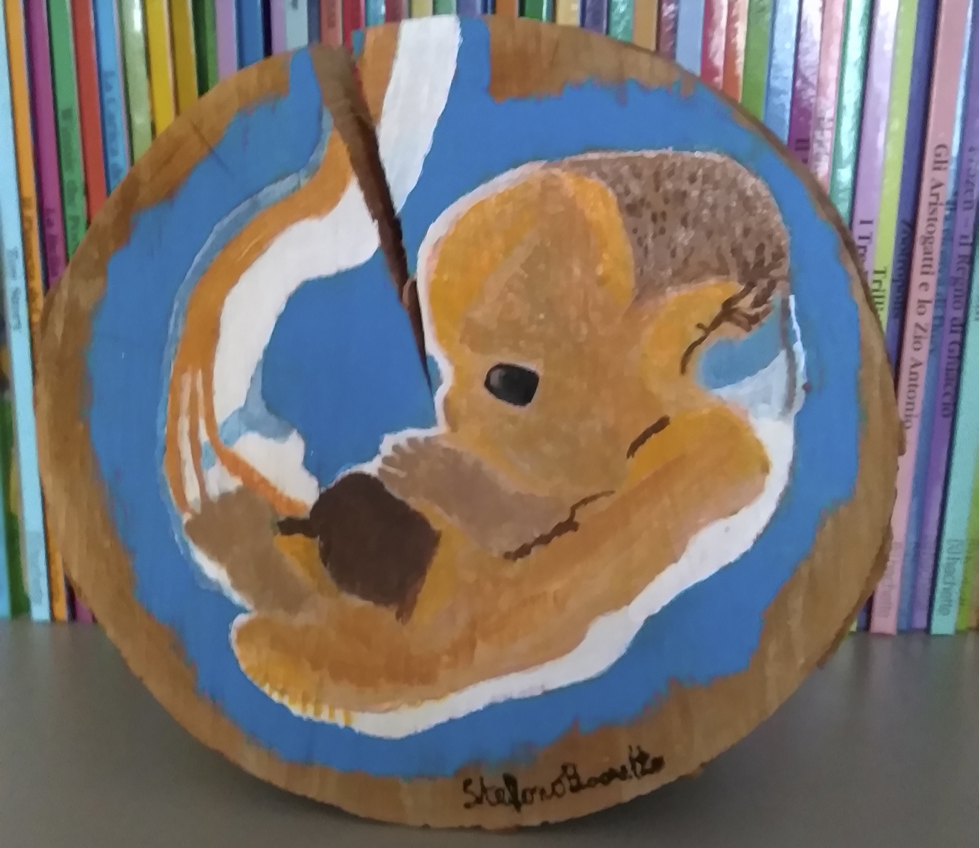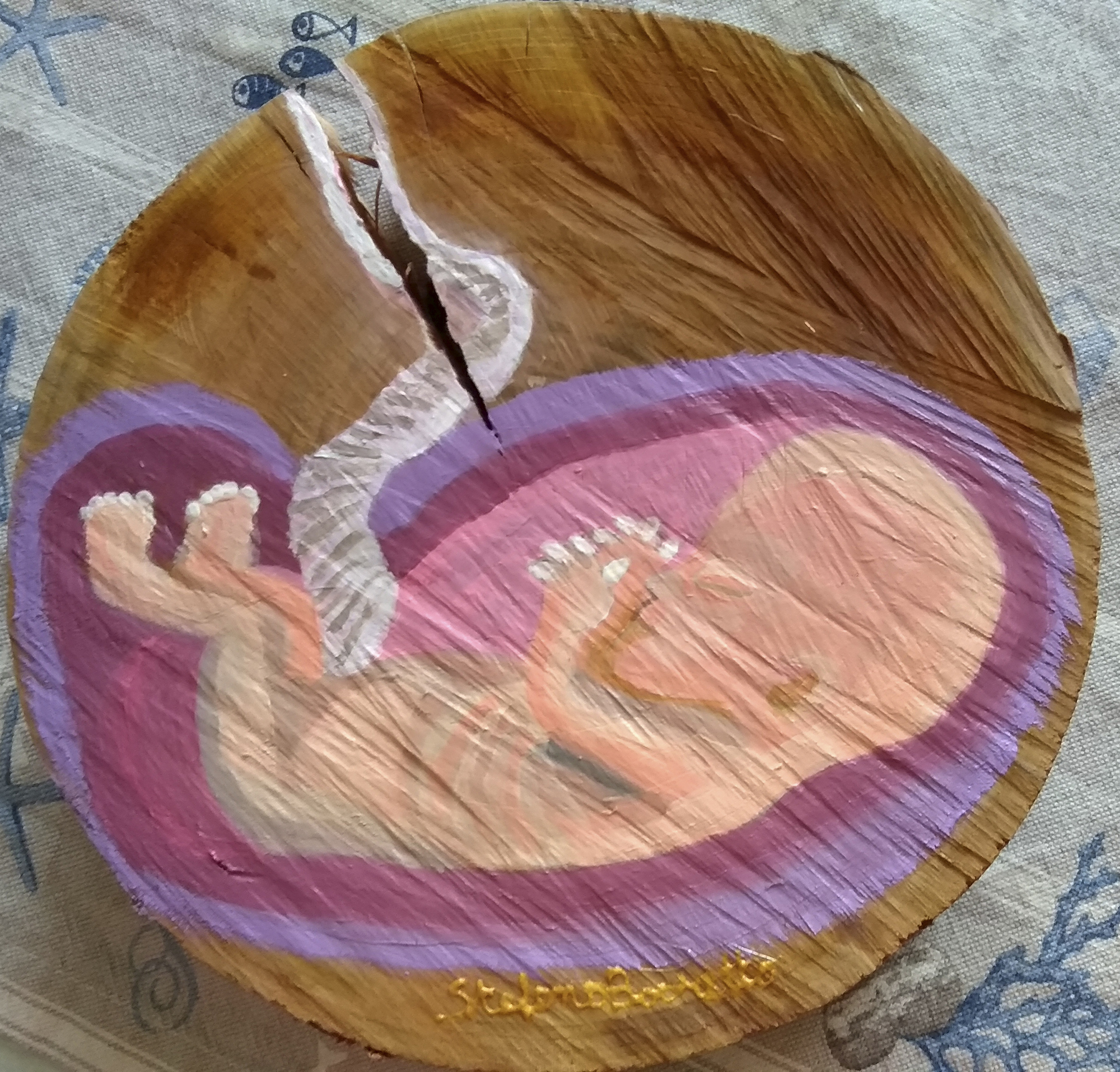 Stefano Boaretto - Italia - Vita e morte - 2019 - Acrilico su sezione di ciliegio su ambo i lati - 80x80x1,7 cm