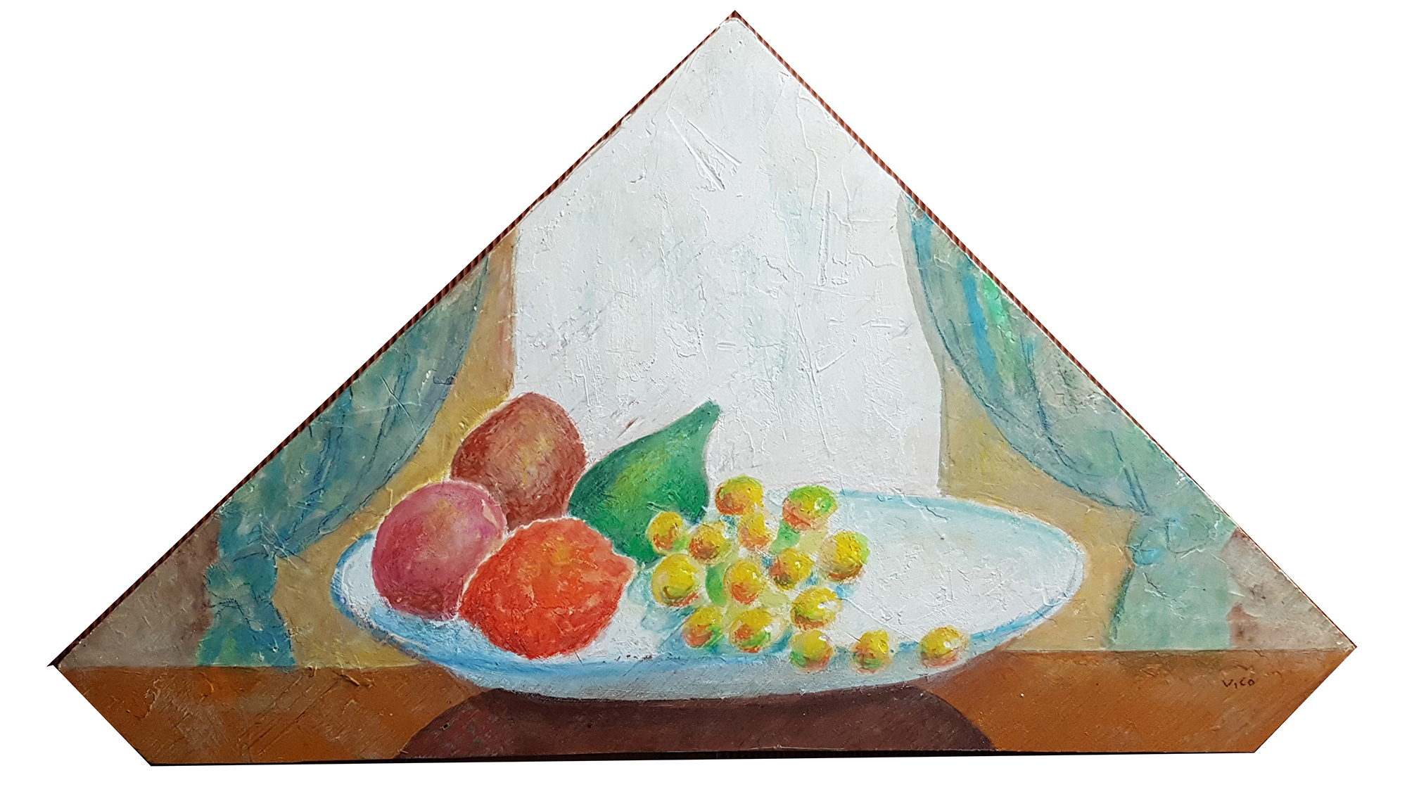 Vico Calabrò - Italia - Frutta alla finestra - Cera fredda su tavola stuccata - 37x64 cm (pentagonale)