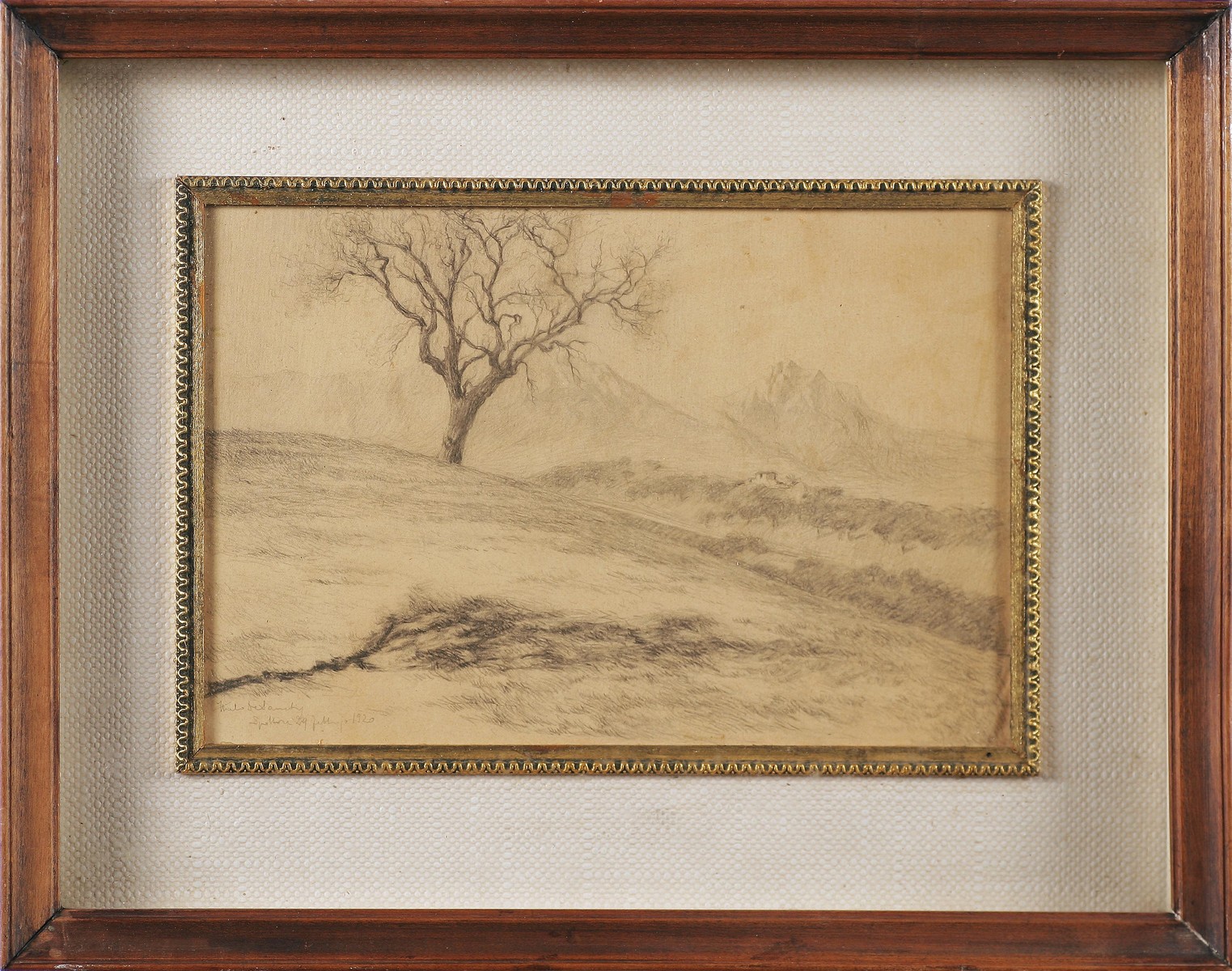 DE SANCTIS ITALO (1881 - 1943) Paesaggio a Spoltore. 1929. Matita su carta. Cm 28,00 x 19,00. Firma e data - Spoltore 29 Gennaio 1929 - in basso a sinistra. Cornice presente
