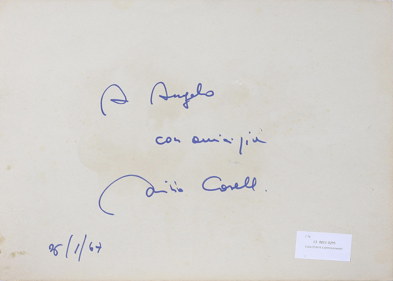 COVELLI NIVIO (n. 1942) Senza titolo. 1967. Tecnica mista su carta. Cm 50,00 x 36,50. Firma e data in basso a destra. Firma e dedica al retro.