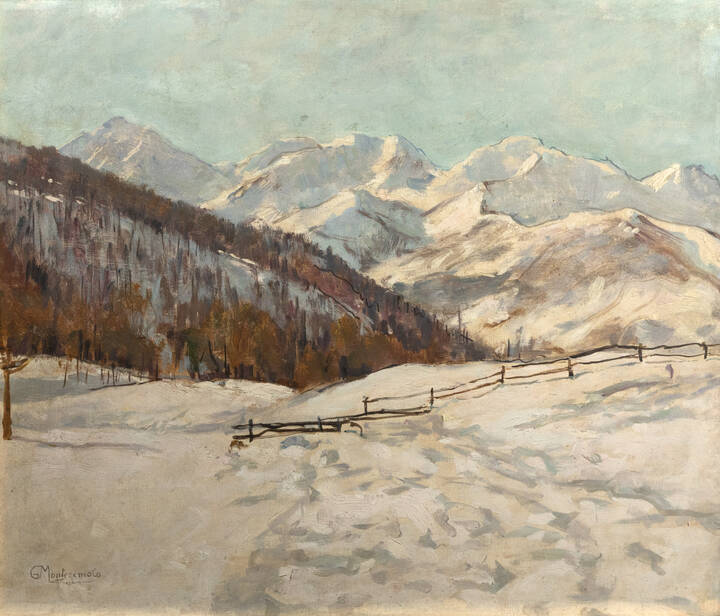 GUIDO MONTEZEMOLO<BR>Mondovì (CN) 1878 - 1941 Torino<BR>"Monti nella neve"