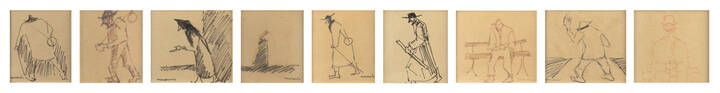 Lotto di nove disegni raffiguranti alcuni soggetti tipici dell'autore