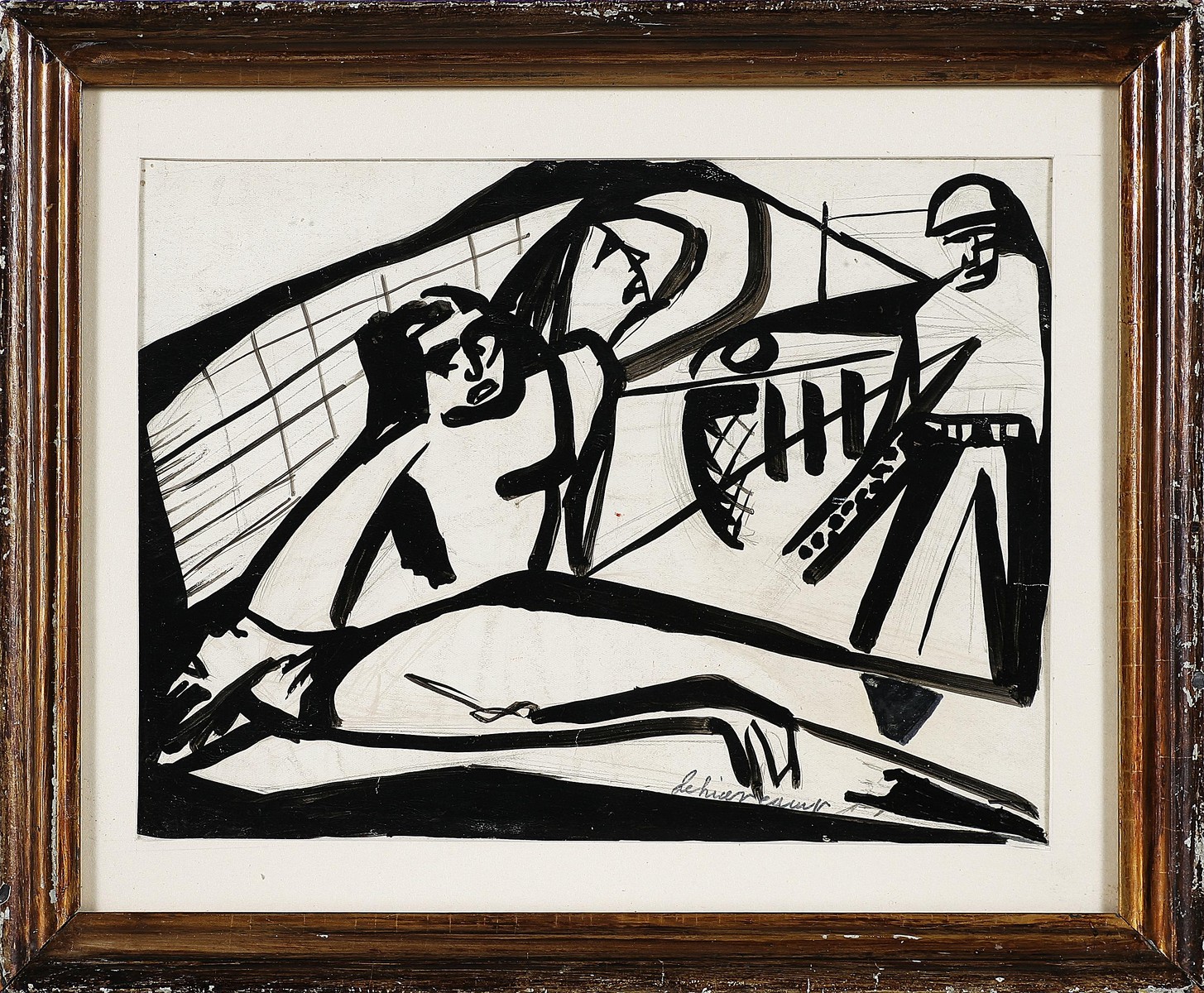 SCHIAVOCAMPO PAOLO (n. 1924) Senza titolo. Tecnica mista su carta. Cm 34,00 x 25,00. Firma in basso al centro. Cornice presente