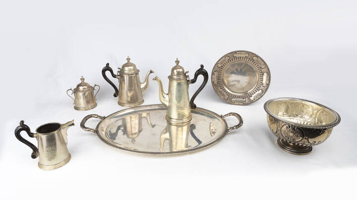 LOTTO DI SETTE OGGETTI IN ARGENTO