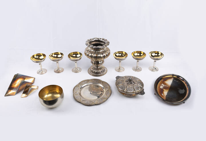 LOTTO DI TREDICI OGGETTI IN ARGENTO