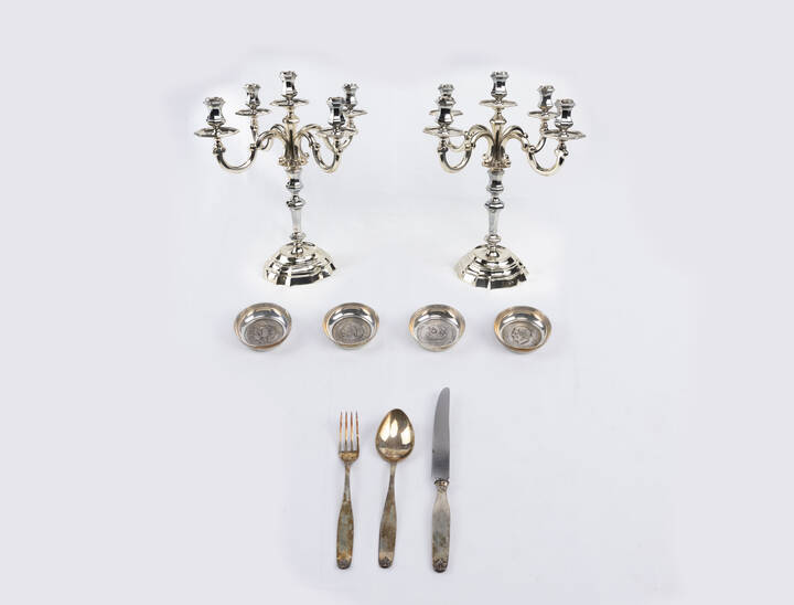 Lot 447 | LOTTO DI NOVE OGGETTI IN ARGENTO