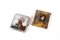 - il primo in argento 925/1000, di forma rettangolare, decorato con smalti policromi raffiguranti un bosco; - Il secondo, in argento, di forma rettangolare con fronte decorato con un alce in smalti policromi