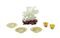 Composto da: due piccoli bicchieri, tre piattini e una scultura a forma di vaso con motivi floreali