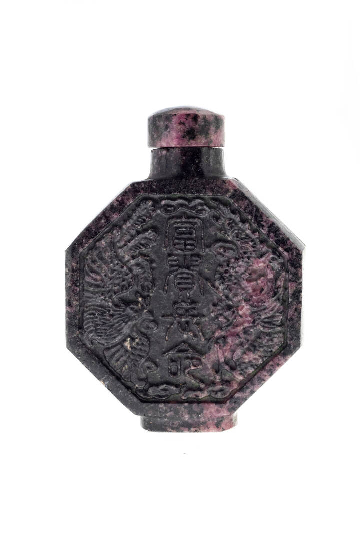 In granito di forma ottagonale, incisa e scolpita con caratteri cinesi e uccelli. XX secolo