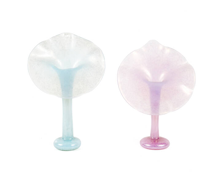 Nei toni del rosa e dell'azzurro, particolare forma con parte superiore aperta
