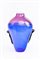 Vaso di forma bombata in vetro bicolore nei toni del blu e del viola; anse laterali di colore nero