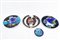 Due piatti in vetro dipinti a soggetti astratti e firmati "Antonio Tuninetto-Torino". Diam. 29 cm; uno in ceramica dipinta a motivi atsratti, firmato "Tuninetto" al retro e recante lo stemma della cermica "Ved. Besio e figlio". Diam. 31 cm; un piattino in smalto policromo fimato "L. Gentile". Diam. 13 cm