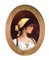XIX secolo, su ceramica raffigurante un ritratto di donna con cuffia gialla. Montatura in ottone dorato