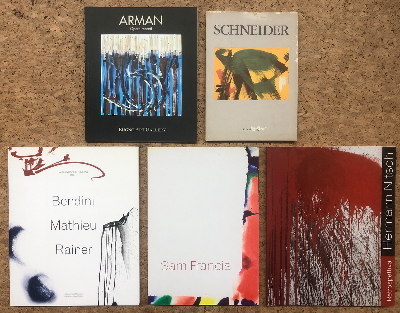 ARTISTI INTERNAZIONALI DEL DOPOGUERRA (NITSCH, SCHNEIDER, FRANCIS, ARMAN, BENDINI - MATHIEU - RAINER) - Lotto unico di 5 cataloghi