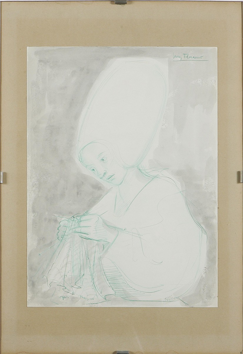 FILOCAMO LUIGI (1906 - 1988) Lotto composto da due disegni. Acquerello e pastello su carta. . 1. Senza titolo, 36,5 x 26,5 cm, firma in basso a destra. 2. Senza titolo, 35,5 x 27 cm, firma in alto a destra. Cornice presente
